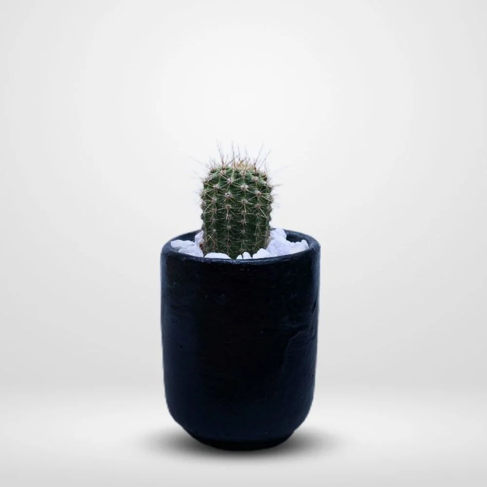 Cactus cheerfully potted in hand painted clay pots. It gives a beautiful aesthetic look to the stationed placed to be used as minimalistic decor to your workspace or home or gift a soothing sustainable addition to someone library of art.