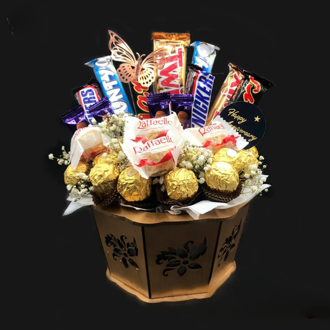 ASSORTED CHOCOLATE BASKET WITH DIFFERENT TYPE OF CHOCOLATES
