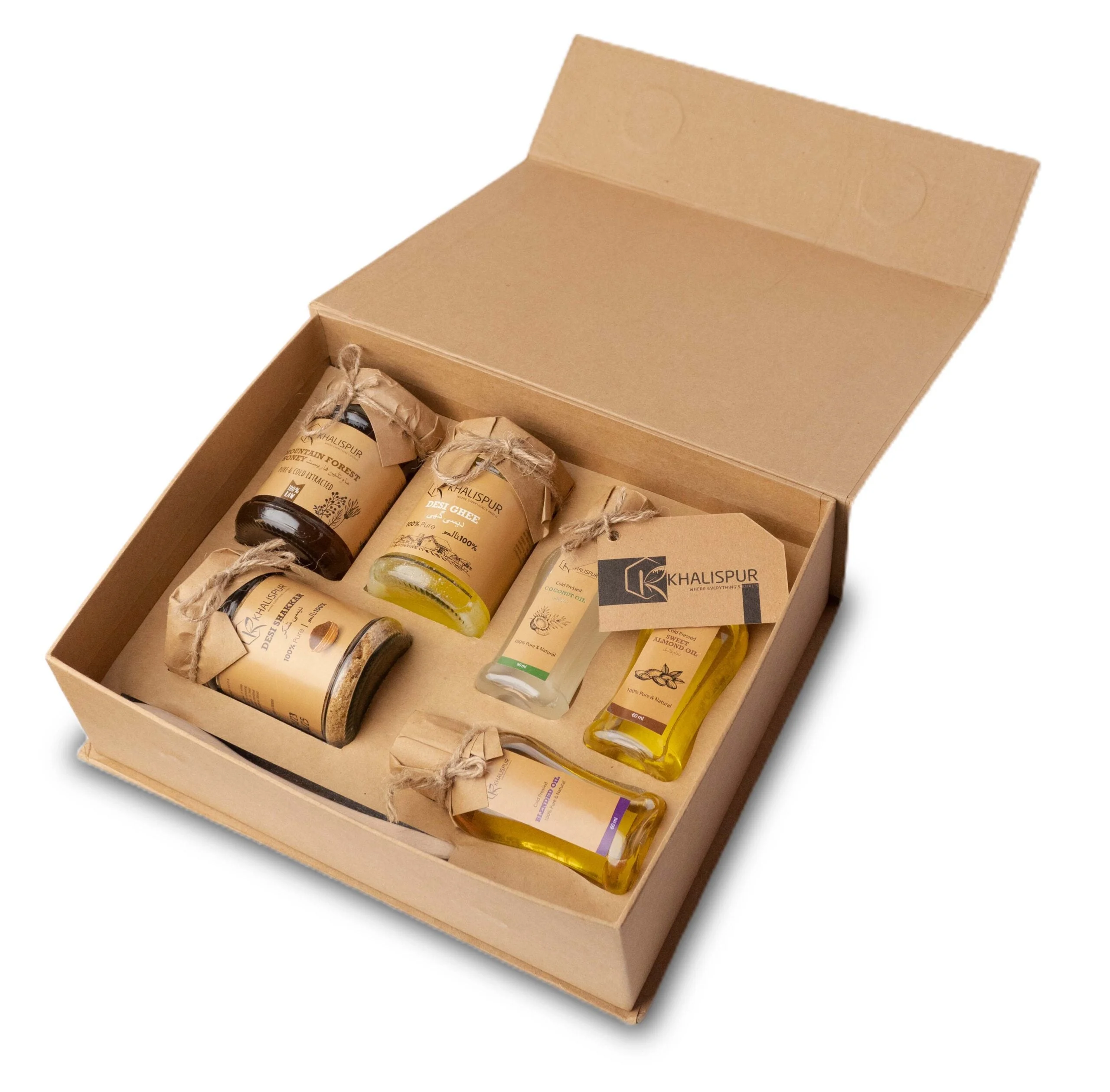 Give your loved ones the ultimate gift of health, wellness, and indulgence with Khalispur’s Classic Gift Box. Our careful selection of raw honey, cold-pressed oils, desi ghee, and desi shakkar, is the perfect way to show them how much you care. Add-ons: