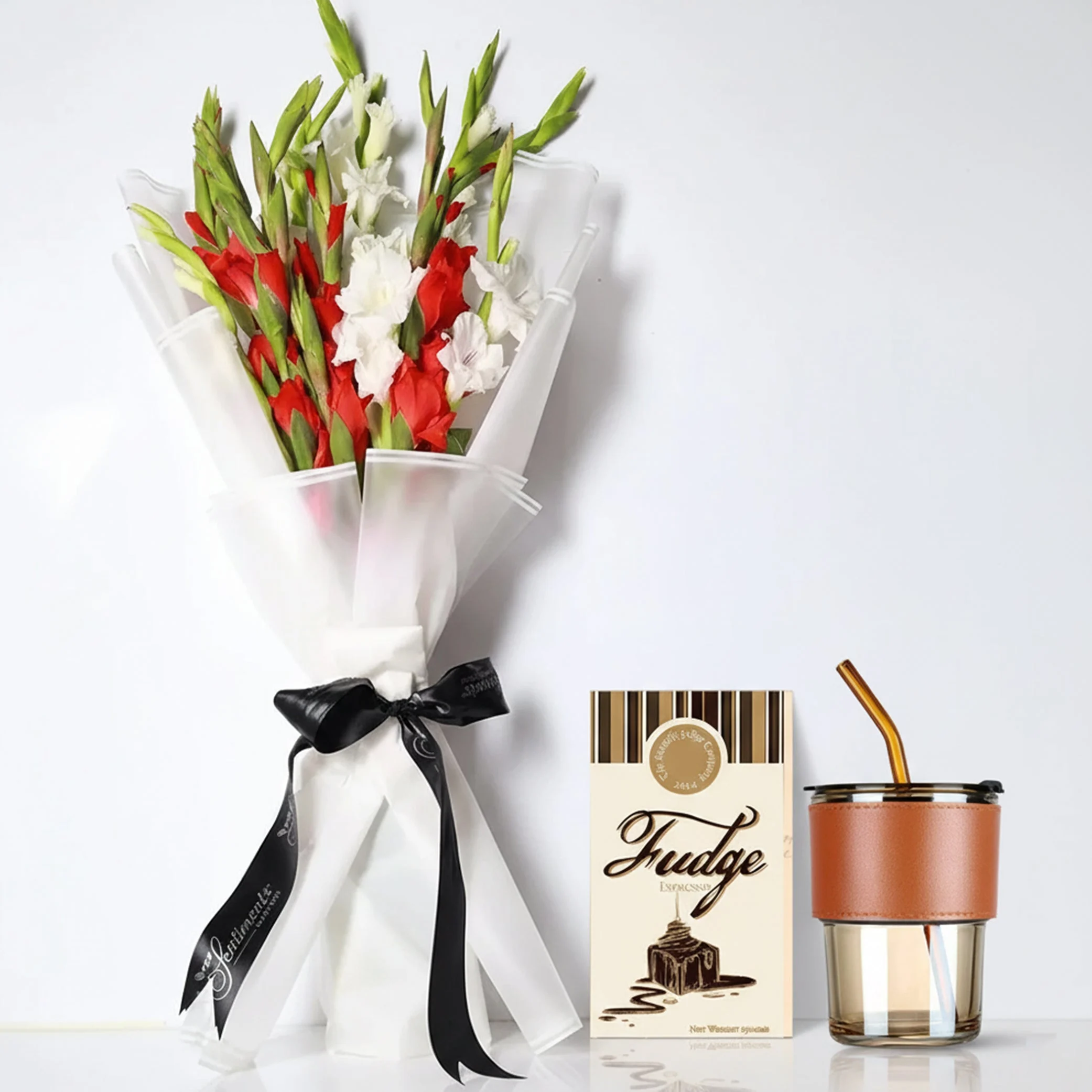 For those who love the comfort of coffee and the joy of simple pleasures. This trio combines a sleek tumbler for on-the-go sips, decadent espresso fudge, and a cheerful bouquet — perfect for gifting warmth, energy, and smiles this winter.
