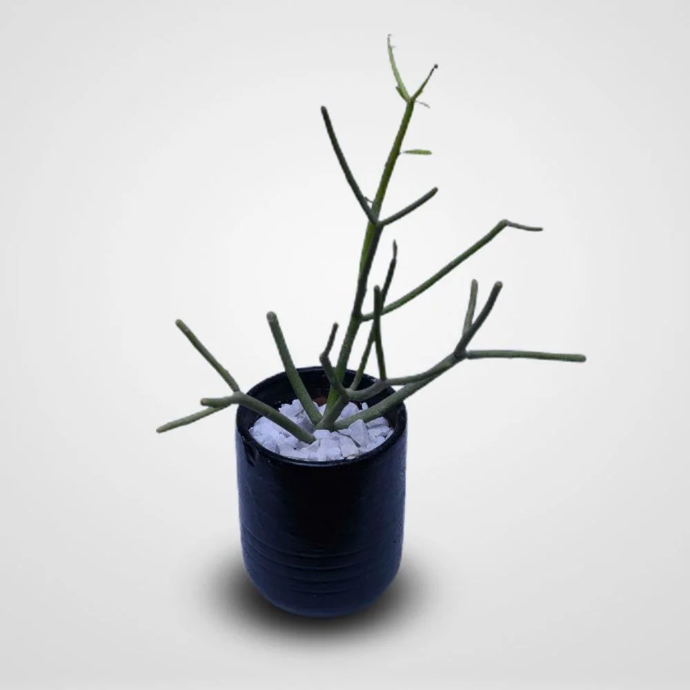 Pencil cactus potted in hand painted clay pots. It gives a beautiful aesthetic look to the stationed placed to be used as minimalistic decor to your workspace or home or gift a soothing sustainable addition to someone library of art.