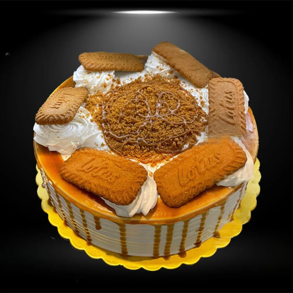 Indulge in this exquisite cake, featuring layers of delicate lotus-flavored sponge cake topped with lotus biscuits and special buttercream. Perfect for any celebration! Serving Size 3 Lbs