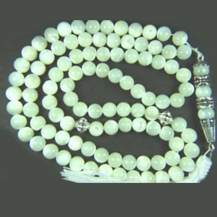 An excellent glass tasbeeh in light green and white colour. This tasbeeh consists of 100 beads. It looks very elegant and has a marble effect on it. Send this